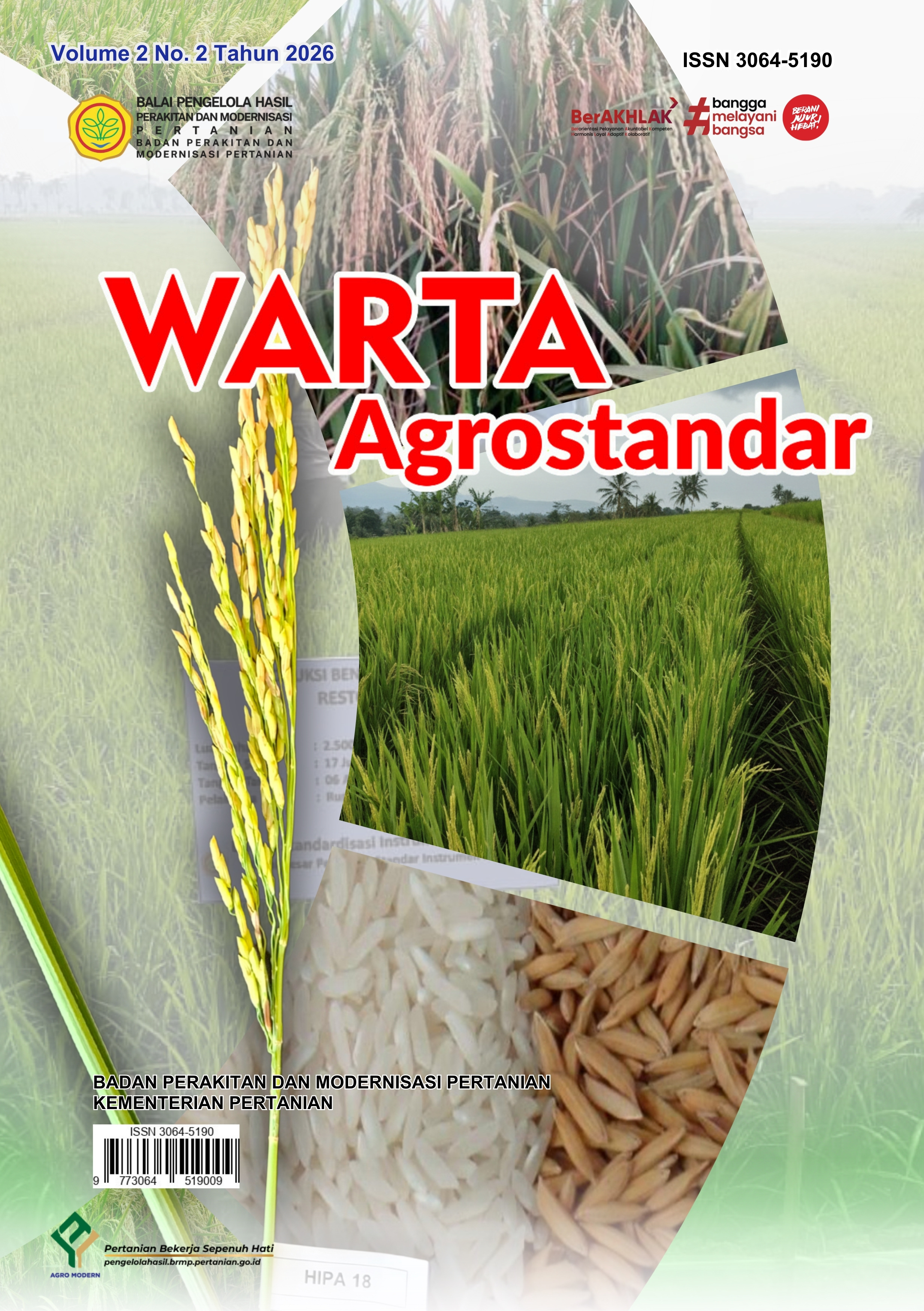 Vol. 2 No. 2 (2026)Warta Agrostandar Vol. 2 No. 2, publikasi berkala yang terbit setiap empat bulan. Warta Agrostandar hadir kembali sebagai media informasi yang menyajikan tulisan ilmiah semi populer seputar perakitan, perekayasaan, standardisasi dan modernisasi serta informasi lainnya yang relevan di sektor pertanian.