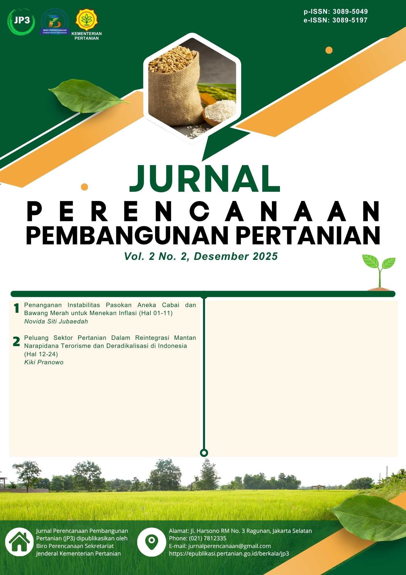 Aneka cabai dan bawang merah merupakan komoditas strategis hortikultura yang menjadi prioritas pengembangan hortikultura nasional. Kedua komoditas tersebut tergolong volatile food yang hingga saat ini masih berkontribusi terhadap inflasi nasional akibat fluktuasi harga yang tajam antarwaktu dan antarwilayah. Permasalahan utama yang dihadapi dalam penanganan instabilitas pasokan aneka cabai dan bawang merah selama ini, yaitu; a) fluktuasi pasokan atau produksi aneka cabai dan bawang merah tidak terkendali di waktu dan wilayah, dikarenakan kapasitas petani melakukan budidaya cabai rawit, cabai besar maupun bawang merah, minimnya pemanfaatan Early Warning System (EWS) dan manajemen pola tanam b) Pengaruh Dampak Perubahan Iklim (DPI) terhadap instabilitas pasokan ditandai dengan pengaruh dampak negatif fenomena La Niña dan El Niño terhadap hasil produksi, keterbatasan budidaya off season serta inkonsistensi mitigasi dan adaptasi iklim dalam penanganan DPI untuk pengamanan hasil produksi. Untuk menjamin ketersediaan pasokan aneka cabai dan bawang merah antar wilayah dan antar waktu, maka terdapat 8 (delapan) rekomendasi kebijakan yang diusulkan oleh penulis untuk dapat dilakukan oleh Direktorat Jenderal Hortikultura selaku pengampu kebijakan pembangunan sub sektor hortikultura, yaitu merancang dan merumuskan kembali kegiatan pengembangan kawasan aneka cabai dan bawang merah, melakukan intervensi di wilayah baru dan wilayah defisit, menyusun perencanaan produksi secara detail dan terukur hingga ukuran waktu dan lokus wilayah, mengoptimalkan pemanfaatan budidaya off season komoditas aneka cabai melalui penggunaan screen house dari berbagai sumber pembiayaan, meningkatkan kapasitas petani, membentuk tim satuan tugas yang solid guna mengawal penerapan manajemen pola tanam dan pemanfaatan EWS, menyusun perencanaan kegiatan disertai langkah mitigasi dan adaptasi iklim untuk mengoptimalkan hasil panen, dan melakukan sinergitas dengan berbagai pihak untuk mengawal pengamanan stabilitas pasokan antar waktu dan antar wilayah tercapai